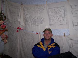 Here Ryan and I stand under the giant spider and web that is downtown. He had to shoot the spider a few times before he would stand there with me.Even at that if you look at the picture big you will see he was not to happy about standing there.